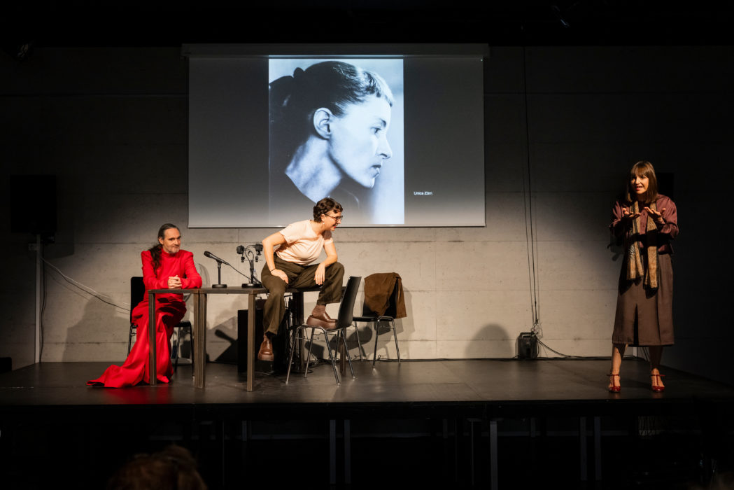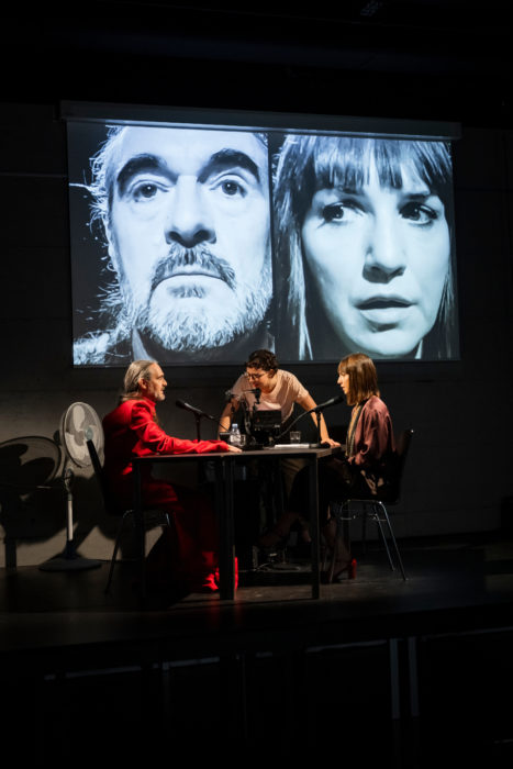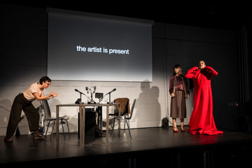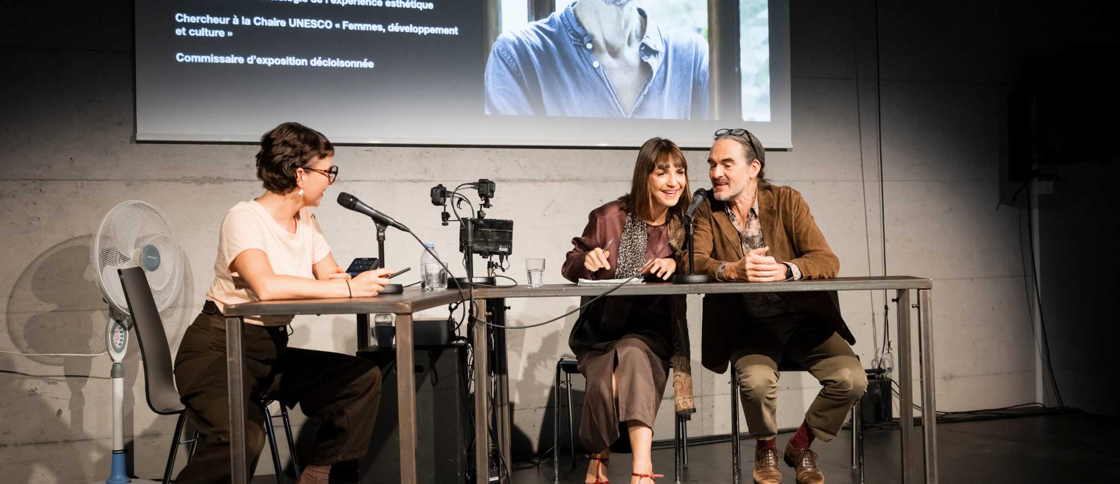 Conférence théâtralisée dédiée aux artistes féminines de l’Art Brut ? Comédie déguisée en exposé savant ? Scène de ménage à trois ? Tout à la fois ?